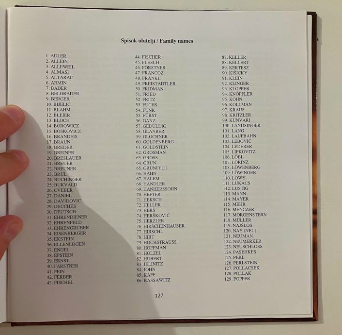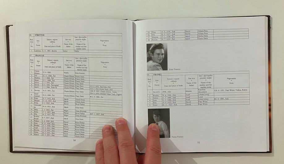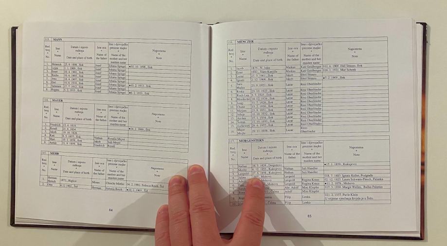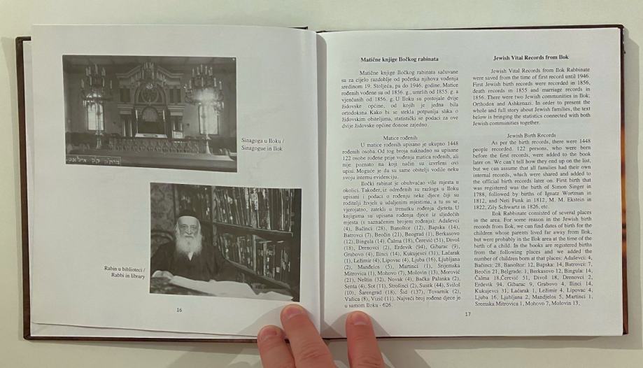 Knjiga „Židovske obitelji u Iločkom rabinatu“ sadrži genealoške podatke za 195 porodica iz 26 mesta na području navedenog rabinata: Adaševci, Bačinci, Banoštor, Beočin, Вerkasovo, Bingula, Čerević, Erdevik, Grabovo, Ilinci, Ilok, Jamena, Kukujevci, Ljuba, Mohovo, Molovin, Morović, Neštin, Principovac, Sot, Susek, Šarengrad, Šid, Sviloš, Vašica and Vizić. Direktno ili indirektno, knjiga obuhvata oko 2700 osoba koje su živele na tom području od kraja 18. veka do završetka Drugog svetskog rata. Podaci o porodicama i pojedincima preuzeti su iz jevrejskih matičnih knjiga.