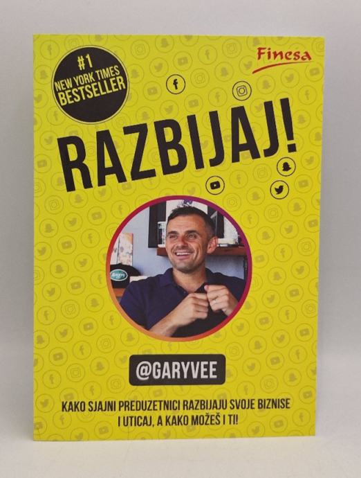 Gary Vee: Razbijaj!Četverostruki autor bestselera New York Timesa, Gary Vee nudi nove lekcije i inspiraciju iz iskustava bezbrojnih utjecajnih osoba i poduzetnika koji su odbacili predvidljivi korporativni put do uspjeha radi svojih snova, osnivajući vlastite uspješne tvrtke i izgrađujući vlastite osobne brendove. U svom međunarodnom bestseleru Gary inzistira na tome da je dobro razvijen osobni brend ključ poduzetničkog uspjeha. „Razbijaj“ će apsolutno sve uvjeriti da je stvaranje odličnog sadržaja na društvenim mrežama kroz izgradnju osobnog brenda fantastična odluka. Početnicima će pružiti smjernice, a iskusnima ponuditi nove savjete i strategije za rast. Za razliku od prethodnog bestselera, u kojem je odgovarao na najvažnija pitanja čitatelja, u ovom Gary razgovara s najuspješnijim poduzetnicima koji su svojim savjetima pronašli put do uspjeha.Stranica: 265Dimenzije: 14.5x20.5Jezik: BeogradPismo: LatinicaStanje: Nova knjigaUvez: MekiGodina: 2018