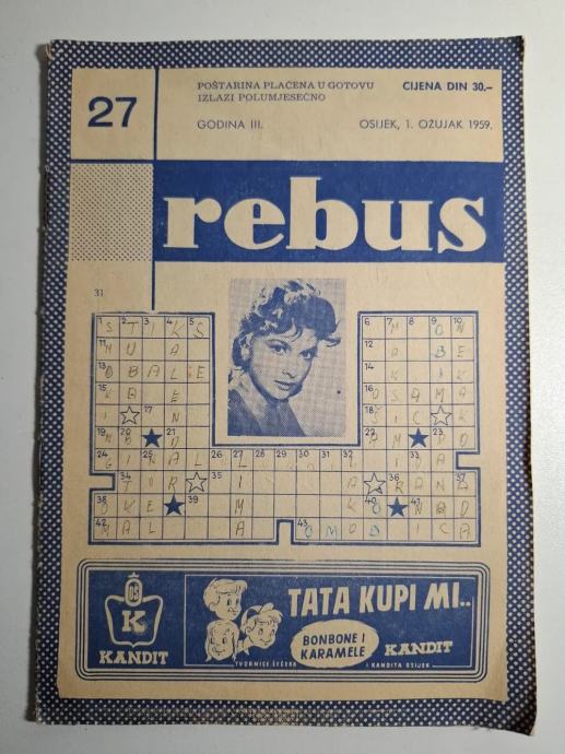 Rebus Osijek 1959 - Glas Slavonije (+ stara raklama Kandit na naslovnici) - prastara enigmatika
