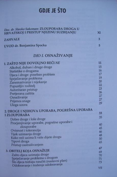Ova knjiga nije dio rata protiv droga, jer se protiv droga ne vodi rat.Ovo nije knjiga "protiv". Ovo je knjiga "za", knjiga za roditelje koji žele naučiti svoju djecu živjeti zdravim životom, bez droga i alkohola. Svojim sadržajem i porukama koje daje, osobito jer afirmira obitelj i njenu ulogu u odgoju djece, knjiga predstavlja vrijedan doprinos u prevenciji upotrebe droga. Ovaj najkompletniji priručnik za spriječavanje zloupotrebe droga namijenjen je roditeljima, nastavnicima i odgajateljima i svima onima koji su odgovorni za odgoj djece i mladeži, da ih sačuvaju i osposobe za život dostojan čovjeka. Knjiga je koncepcijski dobro usklađena s odrednicama Nacionalnog programa suzbijanja zloupotrebe droga u RH.