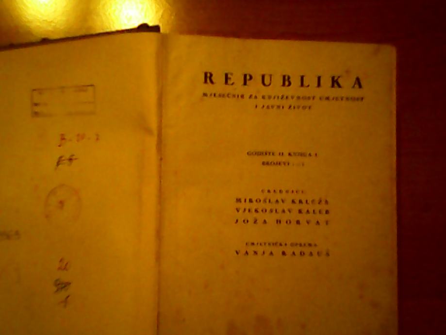 REPUBLIKA,MJESECNIK ZA KNJIZEVNOST,UMJETNOST I ..KRLEZA,KALEB,HORVAT