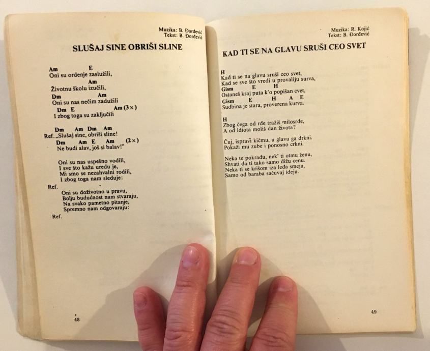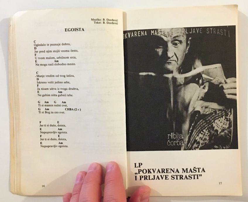Knjiga predstavlja presjek kroz najpopularnije pjesme rock skupine Riblja čorba.