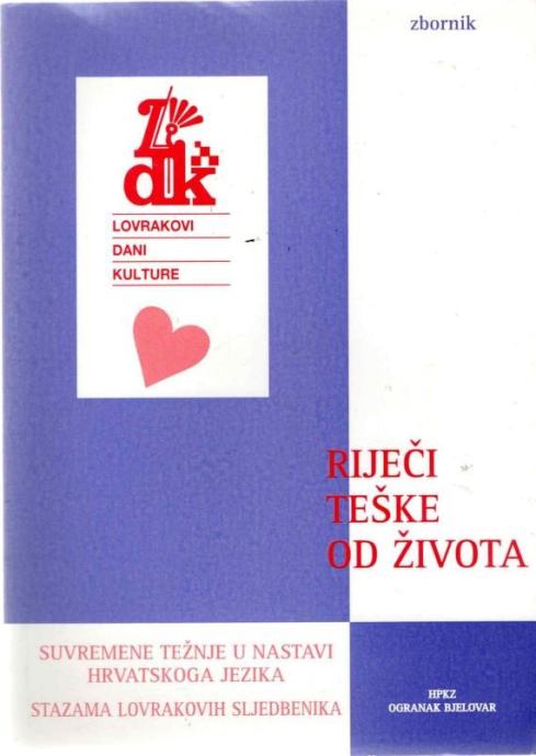 Riječi teške od života : suvremene težnje u nastavi hrvatskoga jezika : stazama Lovrakovih sljedbenika : zbornik / glavni urednik Vladimir Strugar ; uredili Vladimir Strugar, Ilija Pejić.Stranica: 168Dimenzije: 24 cmJezik: BjelovarPismo: LatinicaStanje: OdličnoUvez: MekiGodina: 2003