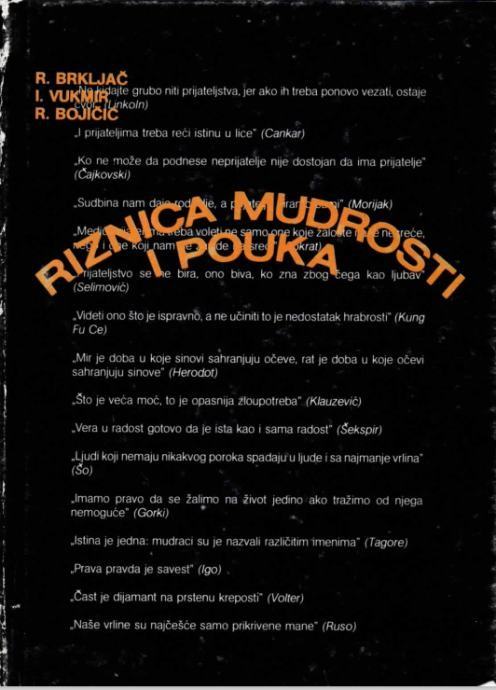 Kada pametan čovek nešto pametno kaže svi pametni to zapamte, kada mudar čovek nešto mudro kaže svi mudri u njegovoj okolini to i zapišu. Nekako baš tako nastala je ova knjiga.Stranica: 245Jezik: BeogradPismo: LatinicaStanje: Rabljena, očuvana knjigaUvez: Tvrdi s ovitkomGodina: 1987
