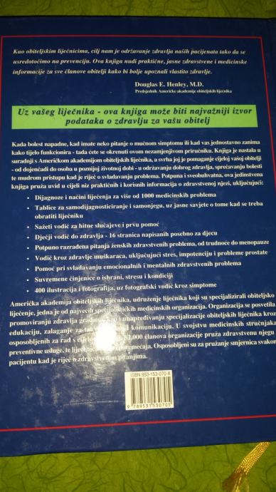 Kada bolest napadne, kad imate neko pitanje o mučnom simptomu ili kad vas jednostavno zanima kako tijelo funkcionira - tada ćete se okrenuti ovom nezamjenjivom priručniku. Knjiga je nastala u suradnji s Američkom akademijom obiteljskih liječnika, a svrha joj je pomaganje cijeloj vašoj obitelji - od dojenčadi do osoba u poznijoj životnoj dobi - u održavanju dobrog zdravlja, sprečavanju bolesti te mudrom pristupu kad je riječ o svladavanju problema.. Potpuna i sveobuhvatna, ova jedinstvena knjiga pruža uvid u cijeli niz praktičnih i korisnih informacija o zdravstvenoj njezi.