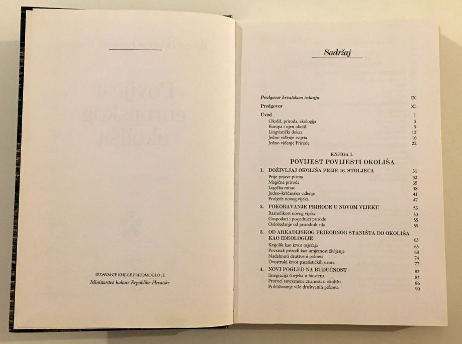 Švicarski povjesničari francuske naobrazbe, profesori na Sveučilištu u Ženevi napisali su ovo djelo koje se duhovno može integrirati u bilo koju europsku nacionalnu tradiciju. Vrijednost je djela napose u koncepciji i strukturi. Potiče na kritičko razmišljanje o kontraverznim tradicijama europskog vrednovanja - u spekulativnom i praktičnom smislu - prirode i, posebice, ljudskog okoliša, i to s tri temeljna stajališta: a) povijesti ljudskog okoliša, b) prostora u vremenu: varijacije i varijabilnost i c) antropizacije ljudskog okoliša u europskoj povijesti. Težište njihova zaključka je na tezi o "ugroženom planetu" , čime ovo znanstveno djelo komunicira s kritičkom ekološkom svješću u njenim sociokulturnim i sociopolitičkim kontekstima. Djelo je vrlo sugestivno izveden dokaz o nerazlučivosti europskog identiteta od europskog ekosistema, dakako, u planetarnom kontekstu. Ovim prijevodom sveučilišnog priručnika - sintetske studije o povijesti okoliša, u Hrvatskoj postaje moguća sustavna visokoškolska nastava iz ekohistorije.