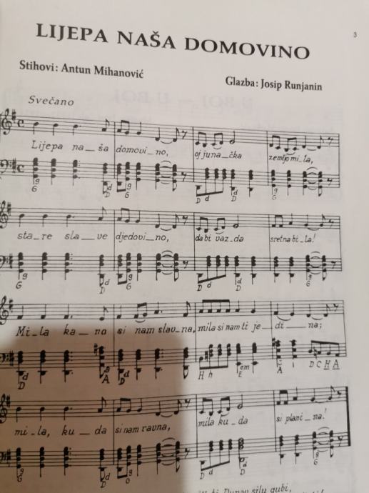 Lijepa naša domovino - Pjesma ličkog junaka - Oj ti vilo Velebita - Tko je u srce te dirno - Vrbniče nad morem - Vozila se po moru galija - Ti si rajski cvijet - Za jedan časak radosti - Gledam bajnu zoru - Trudan putnik - Pijmo, braćo, vince - Gori nebo visoko - Kad smo se pelali - Stara me majka kara - Tri male seke - Veselo srce kudelju prede - Poleg te navade stare - Nikaj nije lepšega - Labud se kupa