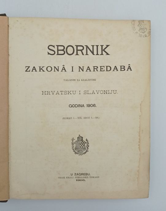 Sbornik zakonah i naredaba valjanih za kraljevine Hrvatsku i SlavonijuStranica: 22 478Dimenzije: 22x27Jezik: ZagrebPismo: LatinicaStanje: DobroUvez: TvrdiGodina: 1906