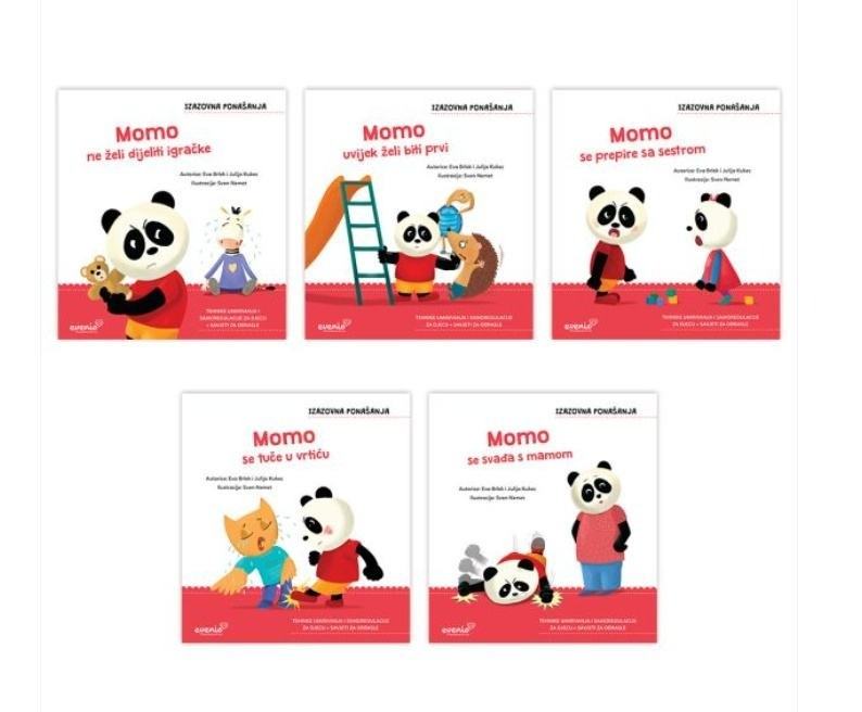 Odrasli se često susreću s ponašanjima djeteta s kojima ne znaju kako se nositi, kako reagirati i što napraviti. Zbog toga ih stručnjaci najčešće opisuju kao izazovna ponašanja. U ovoj seriji slikovnica vidjet ćemo kako izazovno ponašanje može biti potaknuto neugodnim osjećajima i mislima.Priče za djecu uče mališane kako prepoznati neugodne emocije kada se one pojave u tijelu te razne tehnike umirivanja fiziologije i samoregulacije emocija. Naime, tek kad je dijete smireno i svjesno što se događa ono može učiti kako izabrati prihvatljivije načine ponašanja. U slikovnicama se nalaze i savjeti za roditelje, odgojitelje i skrbnike u kojima je objašnjena uloga odraslih u procesu koregulacije emocija koje su u pozadini izazovnih ponašanja te što se zapravo događa u neurofiziologiji djeteta kada ih uočimo.Više o temi izazovnih ponašanja pročitajte na blogu Izazovna ponašanja kod djece: udaranje, vikanje, svađanje… Kako pomoći sebi i djeci?U seriji se nalazi pet slikovnica:Momo ne želi dijeliti igračkeStrah od gubitka dragocjenih predmeta kao pozadina izazovnih ponašanjaMomo se prepire sa sestromIritabilnost, frustracija i preosjetljivost kao pozadina izazovnih ponašanjaMomo uvijek želi biti prviNestrpljivost i impulzivnost kao pozadina izazovnih ponašanjaMomo se svađa s mamomOtpor na postavljene granice kao pozadina izazovnih ponašanjaMomo se tuče u vrtićuSram i krivnja kao pozadina izazovnih ponašanja.Stranica: 24Dimenzije: 21×23 cmJezik: ZagrebPismo: LatinicaStanje: Nova knjigaUvez: MekiGodina: 2023