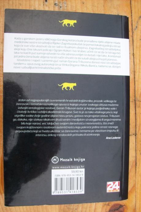 Kada u gorskom jezeru idiličnoga Gorskog kotara bude pronađeno tijelo ubijene mlade medicinske sestre istražitelji iz Rijeke i Zagreba pokušat će pomoći lokalnoj policiji u istrazi koja će sve više ukazivati da se radi o ritualnom ubojstvu. Zagrebačkoj istražiteljskoj ekipi koju čine iskusni policajci Ognjen Kokot i Ivo Vrabec učinit će se da će istraga biti laka no kad ih put sumnje odvede na više adresa uvidjet će da baš i nije tako. A onda kad još jedna žena bude ubijena na isti način shvatit će da suludi ubojica ima još planovaIstodobno i napet i uznemirujuć roman Gorana Tribusona donosi novi istražiteljski tandem u opus ovog autora koji će uz Vinka Dogana i Nikolu Banića, nadamo se, donijeti nove i uzbudljive kriminalističke priče.