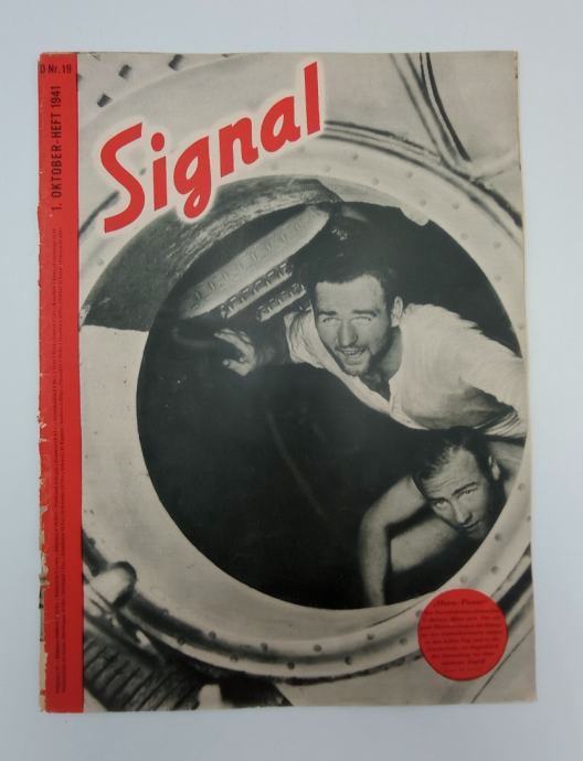 Signal, njemačko izdanje, 1. Oktober-Heft 1941. D Nr. 19Ilustrirani foto-žurnal i vojni propagandni alat, posebno namijenjen publici u neutralnim, savezničkim i okupiranim zemljama.Stranica: 45Dimenzije: 27x36Jezik: BerlinPismo: LatinicaStanje: DobroUvez: MekiGodina: 1941