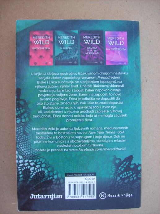 U knjizi U ŠKRIPCU, drugom nastavku serijala Hakeri započetog romanom Predodređeni, Blake i Erica suočavaju se s prijetnjom koja ugrožava njihovu ljubav i njihov život.