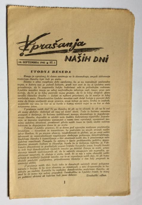 SLOVAPRAŠANJA NAŠIH DNI, 1945., NOVINE