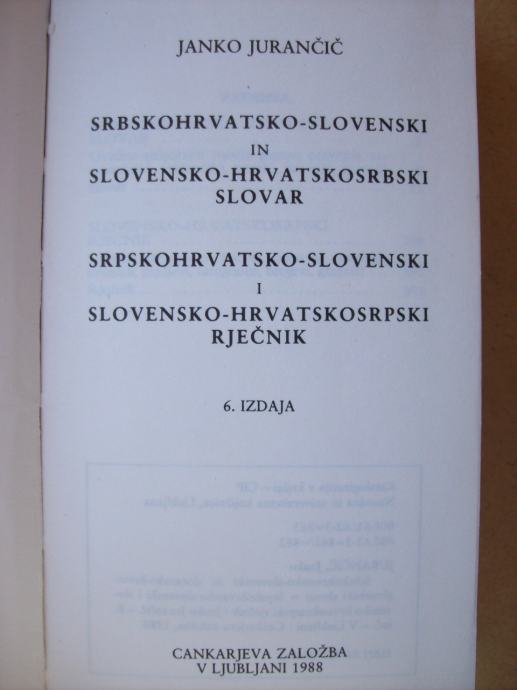 Janko Jurančić: Srpskohrvatsko - slovenski i slovensko - hrvatskosrpski rječnik