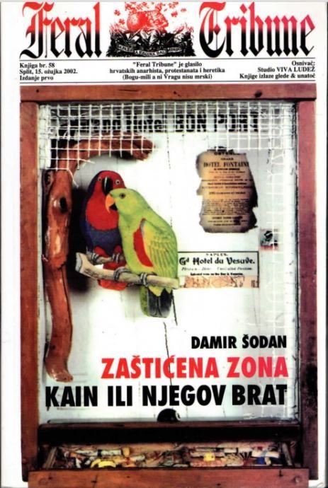 Radnja prve od ovih dviju drama, "Zaštićena zona", zbiva se na Badnjak početkom devedesetih godina 20.-og stoljeća usred tzv. zaštićene zone, tj. na ničijoj zemlji, negdje na području bivše SFRJ. Skupina bolesnika u duševnoj bolnici, ostavljena od medicinskog osoblja, pala je na brigu pripadnicima kanadskoga bataljuna. U potpunosti odsječeni od ostatka svijeta, Kanađani već danima pokušavaju stupiti u kontakt s glavninom svojih snaga u štabu UN-a, ili sa stožerima zaraćenih strana, kako bi evakuirali bolesnike... Domoljubna burleska "Kain ili njegov brat" zbiva se u drugoj polovici devedesetih u najvećem gradu južne Hrvatske. Glavni likovi članovi su obitelji Zovko: otac Jozo, vozač, majka Marija, nastavnica u mirovini, sin Petar, zvani Kain, nesvršeni student likovne umjetnosti i vođa rock-banda "Divlja horda", te njegov brat Tomislav, drugi glasnogovornik vladajuće stranke, koji dolazi u rodni grad održati govor u sklopu predizborne kampanje..."Stranica: 235Jezik: SplitPismo: LatinicaStanje: Vrlo dobroUvez: MekiGodina: 2002