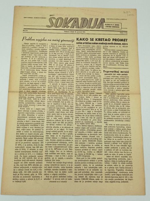 Šokadija br. 52/1951.Urednik: Petar VukovićStranica: 4Dimenzije: 29.5x42.5Jezik: VinkovciPismo: LatinicaStanje: Vrlo dobroUvez: MekiGodina: 1951