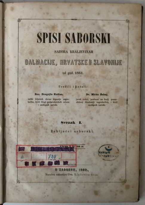 SPISI SABORSKI SABORA KRALJEVINAH DALMACIJE, HRVATSKE I SLAVONIJE OD G