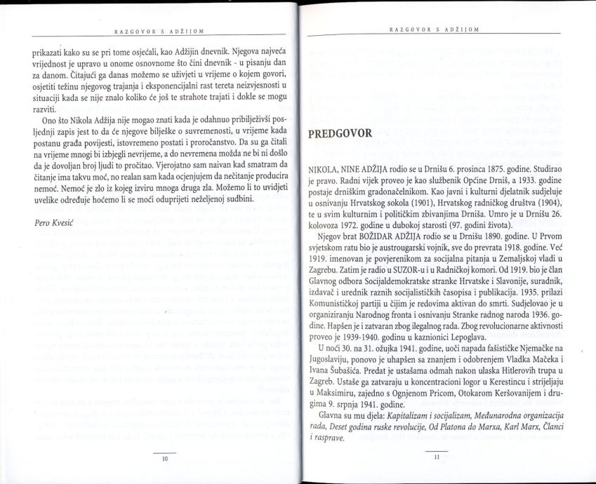 Nikola Adžija (1875. - 1972.) bio je službenik u Drnišu između dva svjetska rata i gradonačelnik. Sudjelovao je u osnivanju Hrvatskog sokola i Hrvatskog radničkog društva. Bio je član HSS-a i brat narodnog heroja Božidara Adžije (1890. - 1941.). Bilježio je događaje svog vremena, pa je iz njegovih natuknica iz godina Drugoga svjetskog rata u Hrvatskoj nastao "Dnevnik 1941. - 1950." (izdanje Matice hrvatske u Drnišu, 2005). Autora Srđana Jovića nadahnula je ista građa po kojoj je izložio jedno novo viđenje.