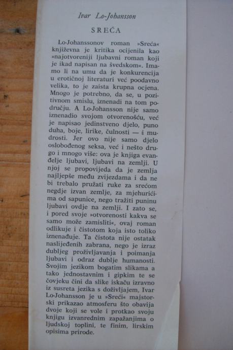 O "Sreći" je uglavnom rečeno da je najotvoreniji ljubavni roman ikad napisan na švedskom jeziku.