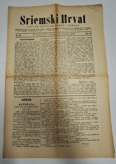 Sriemski Hrvat br. 92/1884.