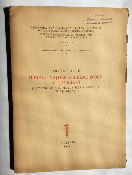 STARE FRANCE, ILIRSKE NAJDBE ŽELEZNE DOBE V LJUBLJANI, 1954.