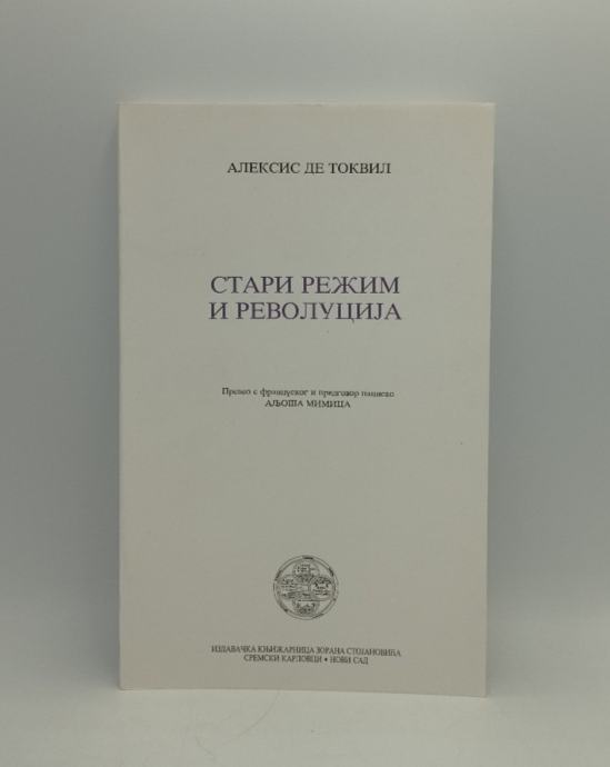 Alexis De Tocqueville: Stari režim i revolucijaKnjiga koju, eto,objavljujem nikako nije povijest revolucije jer takva je knjiga već sročena na odveć sjajan način da bih mogao i pomisliti da je iznova pišem: ovo je, jednostavno, studija o toj revoluciji. Francuzi su godine 1789. poduzeli najveći napor koji je ijedan narod ikada uložio ne bi li svoju sudbinu takoreći raspolutili, te ponorom razdvojili ono što su dotad bili od onoga što su u buduće htjeli biti. S tim ciljem poduzeli su razne mjere sigurnosti kako svoj novi položaj ne bi opteretili ničim iz prošlosti: nametnuli su sebi razne stege kako bi se oblikovali na drukčiji način negoli su bili sazdani njihovi očevi; konačno nisu zaboravili ništa što bi ih moglo učiniti neprepoznatljivima. Stranica: 294Dimenzije: 14x22.5Jezik: Novi SadPismo: ĆirilicaStanje: OdličnoUvez: MekiGodina: 1994