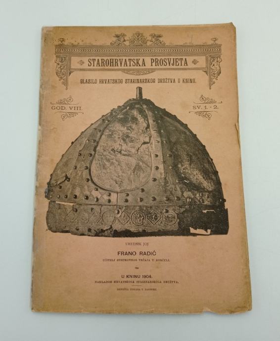 Starohrvatska prosvjetaGlasilo Hrvatskog starinarskog družtva u KninuUrednik Frano RadićGodina VIII. sv. 1 i 2.Sadržaj:F. Radić: Crkvice hrvatsko-romaničkog sloga na otoku LastovuF. Radić: Pregrade (septum) i svetišta i s njima spojene kamenite grede (trabes) starohrvatskih crkavaF. Radić: Tri šlema nadjena na Vidu kod Metkovića nijesu germanskog nego slavenskog podrijetla Stranica: 55Dimenzije: 18.5x26Jezik: KninPismo: LatinicaStanje: DobroUvez: MekiGodina: 1904