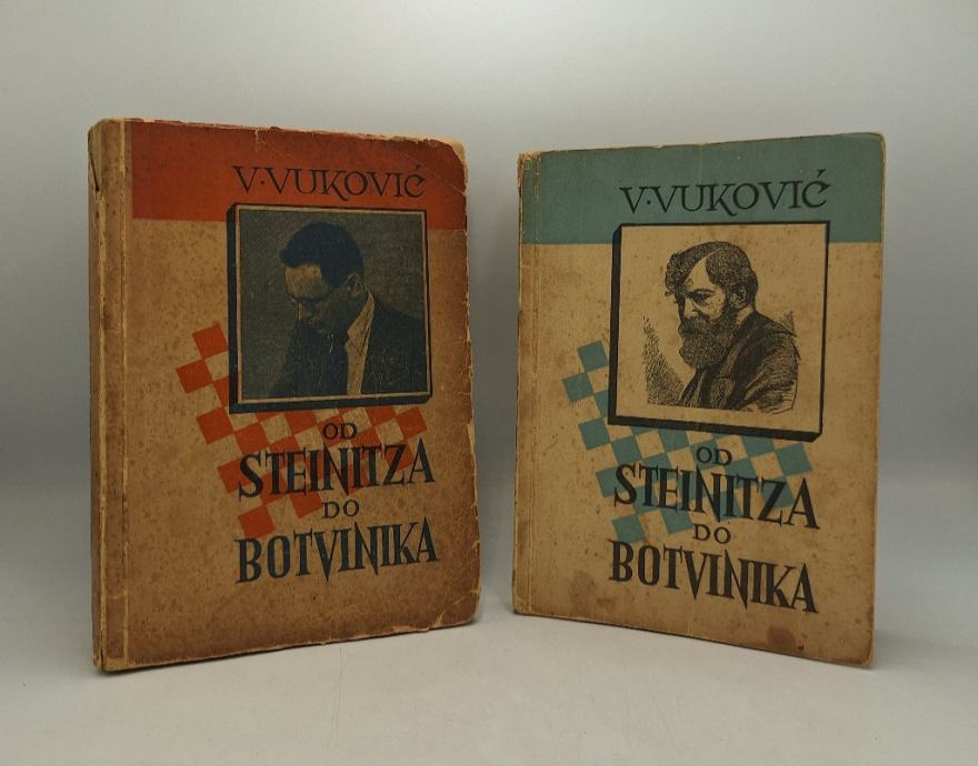 Vladimir Vuković: Od Steinitza do Botvinika I - II.Svjetski šahovski prvaci u ogledu njihovih matc - partijaI. Knjiga: Steinitz - Lasker - CapablancaII. Knjiga: Aljehin - Euwe - Botvinik Stranica: 252 252Dimenzije: 15x20Jezik: ZagrebPismo: LatinicaStanje: DobroUvez: MekiGodina: 1949