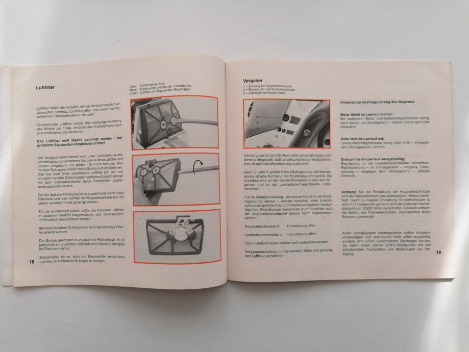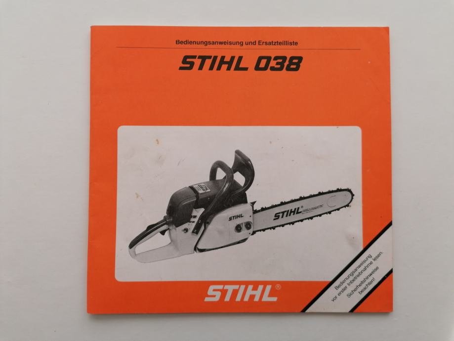 ORIGINALNO UPUTSTVO ZA UPOTREBU, UPORABU za motornu pilu STIHL 038 sa popisom i slikama svih sastavnih dijelova, odlično očuvano, kao novo, sa 50 stranica, prodajem.