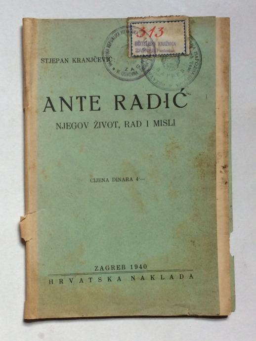 STJEPAN KRANJČEVIĆ, ANTE RADIĆ, NJEGOV ŽIVOT, RAD I MISLI, ZAGREB, 194