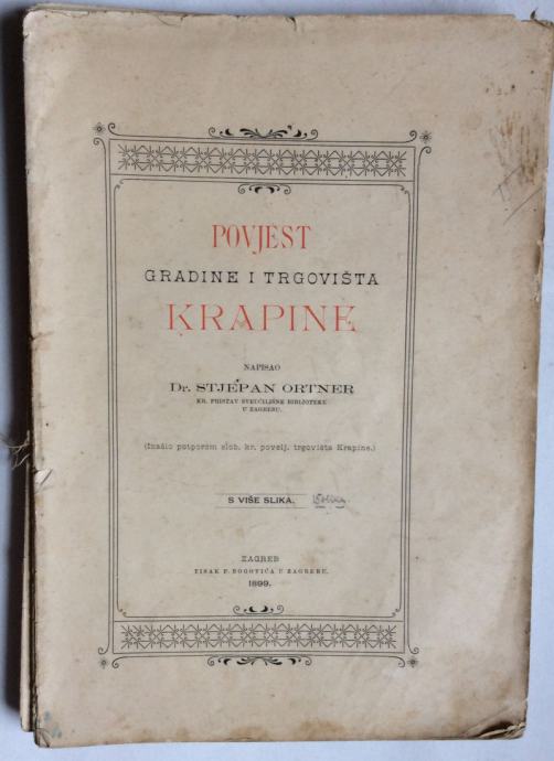 STJEPAN ORTNER, POVJEST GRADINE I TRGOVIŠTA KRAPINE, 1899. ZAGREB
