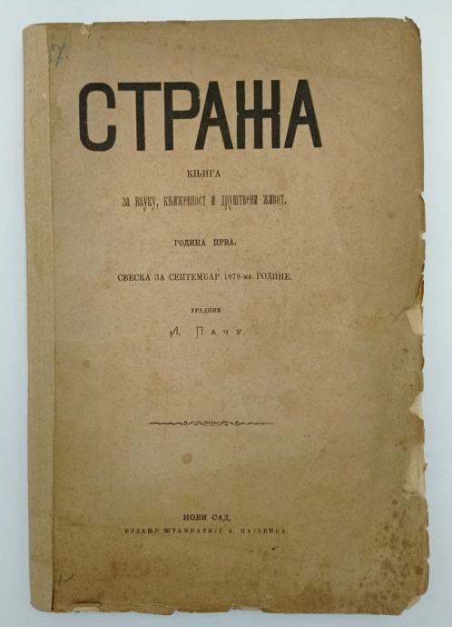 Straža. Knjiga za nauku, književnost i društveni život. Godina prva, sveska za septembar 1878. Urednik Lazar Paču.Stranica: 172Dimenzije: 17x26Jezik: Novi SadPismo: ĆirilicaStanje: DobroUvez: MekiGodina: 1878
