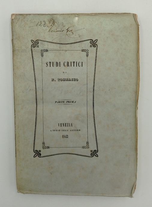 Niccolo Tommaseo: Studi criticiEx libris Velimir Gaj Stranica: 322Dimenzije: 15.5x23Jezik: VeneziaPismo: LatinicaStanje: DobroUvez: MekiGodina: 1843