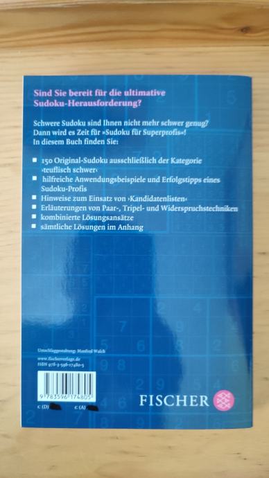 Prodajem knjigu Sudoku für Superprofis, 150 teških sudoku, njemački.