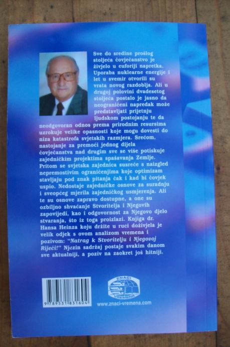 Sve do sredine prošlog stoljeća čovječanstvo je živjelo u euforiji napretka. Uporaba nuklearne energije i let u svemir otvorili su vrata novog razdoblja. Ali u drugoj polovini dvadesetog stoljeća postalo je jasno da neograničeni napredak može predstavljati prijetnju ljudskom postojanju te da neodgovoran odnos prema prirodnim resursima uzrokuje velike opasnosti koje mogu dovesti do niza katastrofa svjetskih razmjera. Knjiga dr. Hansa Heinza doživjela je velik odjek s ovom analizom vremena i pozivom: "Natrag k Stvoritelju i Njegovoj riječi!" Njezin sadržaj postaje svakim danom sve aktualniji, a poziv na zaokret još hitniji.