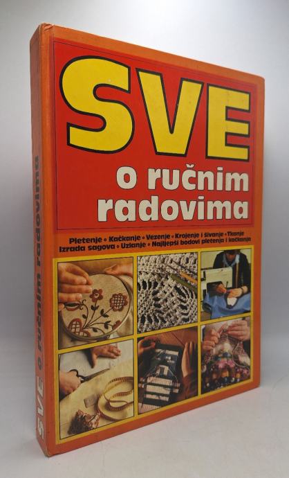 Sve o ručnim radovima Priredile: Lina Legiša i Mirjana MilačPletenje, kačkanje, vezenje, krojenje i šivanje, tkanje, izrada sagova, uzlanje i leksikon ručnih radova sa više od 800 pojmova.Više od 600 fotografija u boji, likovnih priloga i crteža.Stranica: 312Dimenzije: 21.5x30Jezik: LjubljanaPismo: LatinicaStanje: Vrlo dobroUvez: TvrdiGodina: 1987