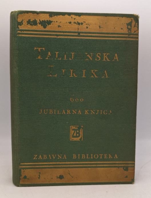 Talijanska lirika600. jubilarna knjigaUredili O. Delorko i A. Nizeteo Stranica: 191Dimenzije: 15.5x20.5Jezik: ZagrebPismo: LatinicaStanje: DobroUvez: TvrdiGodina: 1939