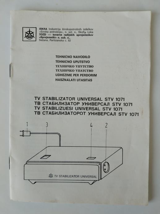 Tehničko uputstvo za tv stabilizator ISKRA UNIVERSAL STV 1071, iz 1970-ih godina, odlično očuvano, prodajem.