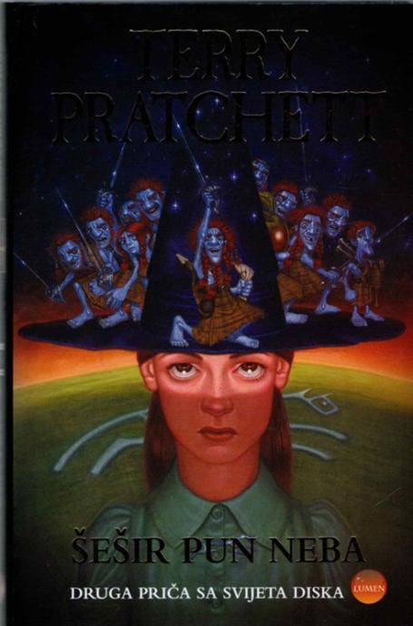 Nakon što je u prethodnoj knjizi „Tiffany protiv vilinske kraljice” u dobi od samo devet godina djevojčica Tiffany uspjela poraziti čak i vilinsku kraljicu, u novom romanu u izdanju Lumena, „Šešir pun neba”, Tiffany Cuka ima 11 godina i puno više iskustva. Tiffany sada mora naučiti kako biti prava vještica, a u tome joj treba pomoći iskusna vještica, gospođica Jakoja. Ali, naukovanje male Tiffany ne prolazi bez teškoća.U novom romanu pratimo Tiffany koja stiže u kuću gospođice Jakoja, inače posve obične vještice osim što ima dva tijela. Očekujući da odmah nauči sva vještičja umijeća, Tiffany je razočarana jer s gospođicom Jakoja liječi bolesne ljude i muze koze. Svaki put kad sjedne na metlu Tiffany povraća, a ne zna složiti ni običnu zavrzlamu, klupko svega i svačega koje otkriva krije li se u blizini kakva čarolija. Druge djevojčice, vještičje naučnice, nisu je dočekale raširenih ruku. A kada se naivna Tiffany još i pohvali da joj je najuglednija vještica, gospa Vedrivosak, nakon borbe s vilinskom kraljicom darovala šešir, potpuno zaboravivši da je riječ o virtualnom šeširu, vještičje je naučnice ismijavaju. K tome, nedostaju joj krajolik i tišina rodnoga Krša. No, sve bi to bilo podnošljivo da joj se nije prikradalo rojilo, bestjelesno zlo koje uđe u mozak i iskrivi duh i osobnost svojeg „domaćina”. Rojilo je ušlo u Tiffany, ona je postala zla, ali i vješta u čaranju.Epska borba Tiffany protiv zla u sebi postaje neizbježna, a u toj borbi strada i jedno tijelo gospođice Jakoja. Tiffany svesrdno pomažu vilenjaci Nac Mac Feeglei, crvenokosi čovječuljci plave kože u kiltu, visoki samo petnaest centimetara, koji vole piće, tučnjavu i krađu, a ne vole kupanje. Predvodi ih Rob Biloko, a bez njih, tko zna bi li Tiffany ikada pobijedila rojilo. Neprocjenjiva joj je bila i podrška mudre vještice Vedrivosak koja je hrabri da pronađe u sebi snagu za tu odlučnu borbu. Na tome uzbudljivom putu Tiffany se susreće i sa samom Smrću, ali još važnije, spoznaje samu sebe. Na kraju Tiffany pobjeđuje u borbi u kojoj je sazrela i postala prava vještica s vlastitim šeširom, šeširom punim neba.Stranica: 250Dimenzije: 15 x 23Jezik: ZAGREBPismo: LatinicaStanje: Nova knjigaUvez: Tvrdi s ovitkomGodina: 2017