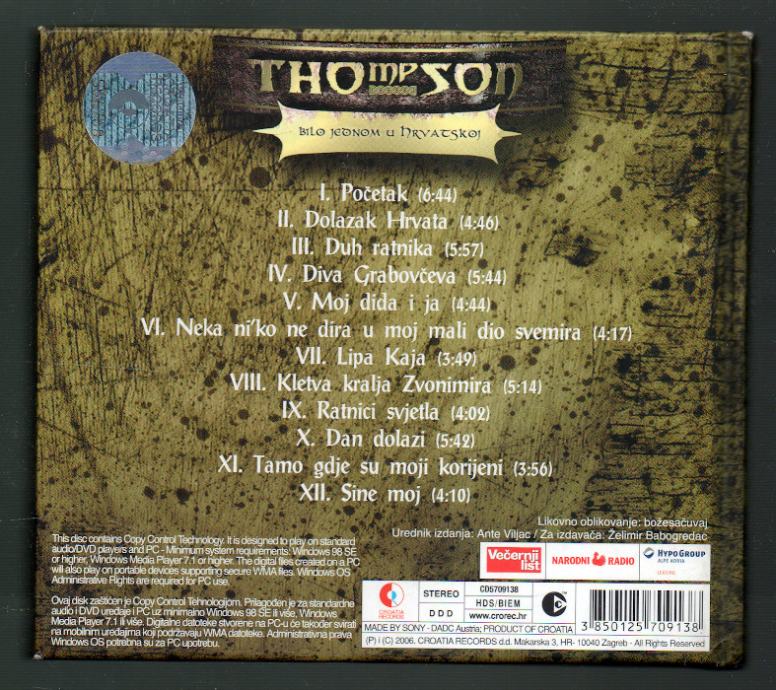 Thompson, Marko Perković - Bilo jednom u Hrvatskoj ( riječi pjesama )