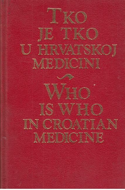 Tko je tko u hrvatskoj medicini je biografska enciklopedija s više od 3000 životopisa najpoznatijih liječnika, stomatologa i farmaceuta u Hrvatskoj i hrvatskoj dijaspori. Sadrži i dodatak – adresar najvažnijih zdravstvenih ustanova, pregled privatne prakse te adresar proizvođača i dobavljača medicinske opreme u Hrvatskoj.Stranica: 753Dimenzije: 160 × 240 mmJezik: ZagrebPismo: LatinicaStanje: OdličnoUvez: TvrdiGodina: 1994