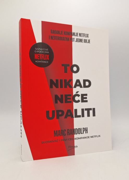 Marc Randolph: To nikad neće upaliti: rađanje kompanije Netflix i neverovatan put jedne idejeNetflix trenutno ima preko 215 milijuna korisnika i 9500 zaposlenika pa se njegov uspjeh čini vrlo očekivanim pa i neizbježnim. Međutim, ova tvrtka od prvog dana osnivanja imala je samo dva osnivača, mali tim i probleme na svakom koraku. Ovo je jedna od najinspirativnijih priča ikad, uspon tvrtke Netflix koja je skoro postala tvrtka za personalizirane šampone i daske za surfanje.Marc Randolph je nakon uspješne karijere u različitim tvrtkama znao da želi postati poduzetnik, znao je da njegova bilježnica s 950 propalih ideja čeka onu pravu, onu koja će promijeniti svijet.Njegov suputnik s kojim je dijelio auto na putu do posla, Reed Hastings, na većinu ideja hladno je rekao "To nikad neće uspjeti", sve do jedne... Sve ostalo je povijest - povijest koja će vas dovesti do toga da ustrajete u svojim idejama, naučite prepoznati one za koje se vrijedi boriti, lekcije o liderstvu jednog od najuspješnijih osnivača te kako izgraditi zdravu, stabilnu kulturu tvrtke - bilo da ima 3 ili 30.000 zaposlenika.Stranica: 365Dimenzije: 14.5x20.5Jezik: BeogradPismo: LatinicaStanje: Nova knjigaUvez: MekiGodina: 2022