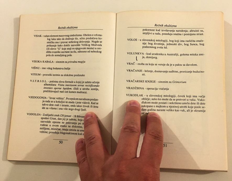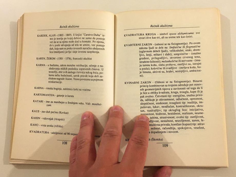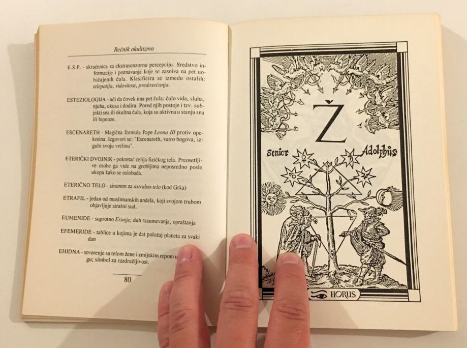 Rečnik sadrži oko 1300 pojmova koji se najdirektnije odnose na fenomen okultnog i obuhvata sve relevantne okultne nauke i discipline: astropologiju, alhemiju, teozofiju, spiritizam, metapsihiku, magnetizam, egzoteriju, ezoteriju, misterije, onostrani život, reinkarnaciju, adeptologiju, tajnu nauku u užem smislu, hiromantiju, fiziognomiku, grafologiju, kartomantiju, oneiromantiju i područje mitologije u onom njenom vidu koji se graniči sa fenomenom okultizma.