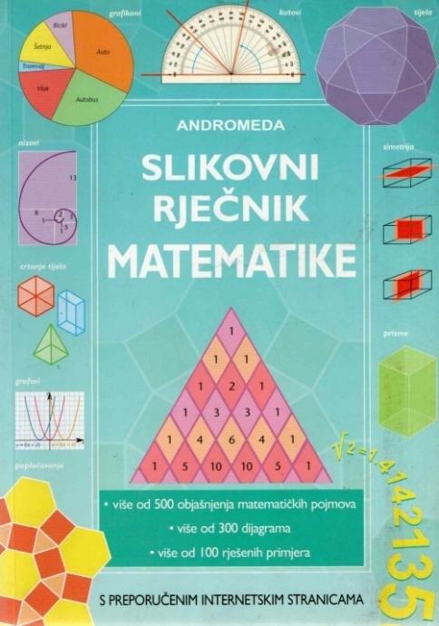 Priručnik matematike namijenjen učenicima, donosi sažeta objašnjenja i definicije temeljnih matematičkih izraza i pojmova potkrijepljene primjerima, ilustracijama i riješenim zadacima koji pokazuju primjenu teorije u praksi. Unakrsne reference i kazalo pojmova olakšavaju pristup građi koja je podijeljena u sljedeće tematske cjeline: broj; oblik, prostor i dimenzije; algebra; postupanje s podacima. Internetske adrese preporučenih web stranica nadopuna su svakoj od tema.Dimenzije: 17x24Jezik: ZagrebPismo: LatinicaStanje: Nova knjigaUvez: Meki