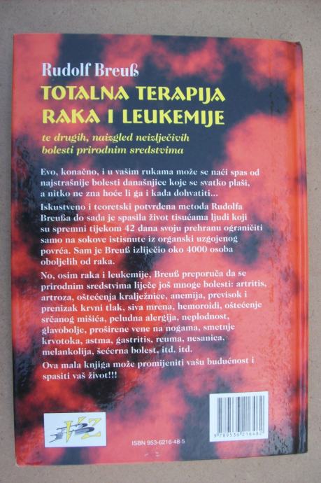 Totalna terapija raka i leukemije obrađuje iskustveno i teoretski potvrđenu metodu Rudolfa Breussa. Ona je do sada spasila život tisućama ljudi koji su spremni tijekom 42 dana svoju prehranu ograničiti samo na sokove istisnute iz organski uzgojenog povrća. Sam je Breuss izliječio oko 4000 osoba oboljelih od raka.