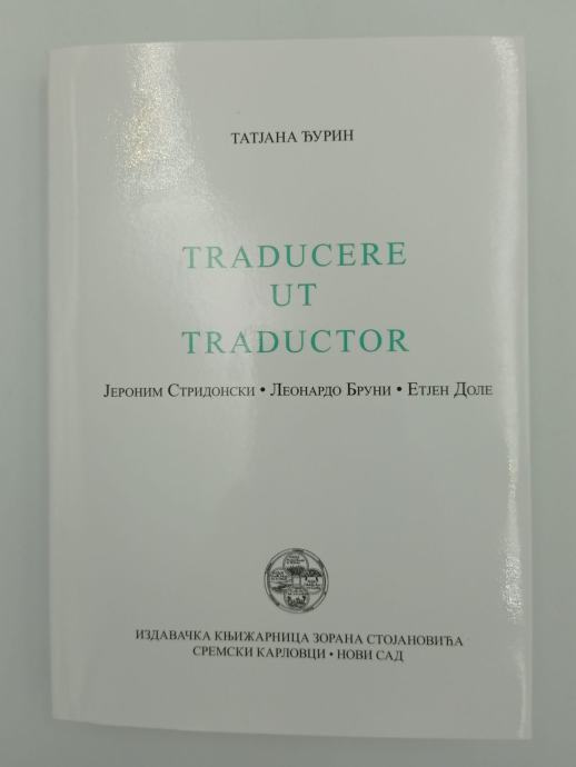 Tatjana Đurin: Traducere ut traductor: Jeronim Stridonski - Leonardo Bruni - Etjen Dole Stranica: 200Dimenzije: 12x18Jezik: Sremski Karlovci - Novi SadPismo: ĆirilicaStanje: OdličnoUvez: Meki s ovitkomGodina: 2021