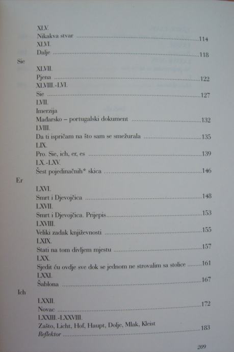Tajna je bio Hošek.Hošek je stanovao u podrumu, sam. Podrum, radionica i stari, točno nasuprot našem vrtu. s prozora se baš tamo moglo vidjeti. S prozora vikendice, iza mreže za komarce. U svoj podrum nikoga nije puštao. Nekoliko stuba prema dolje, još i jedno poveliko skladište čija je vrata najčešće ostavljao otvorenima, unutra-van hodao je Hošek. Ime mu je Hošek. Pilio je. Srednjeg rasta, tanak, žilav, takvo nešto.Godine?Lice mu je bilo tako, ne znam kako.Materinji jezik mađarski. Ne zna se koji mu je jezik bio materinji. Mađarski? Hošek. Najčešće tajna. Tajna u podne, popodne, predvečer, inače stolar i biciklist. Biciklistički trkač. Ne neki veliki. Ne neka velika tajna....