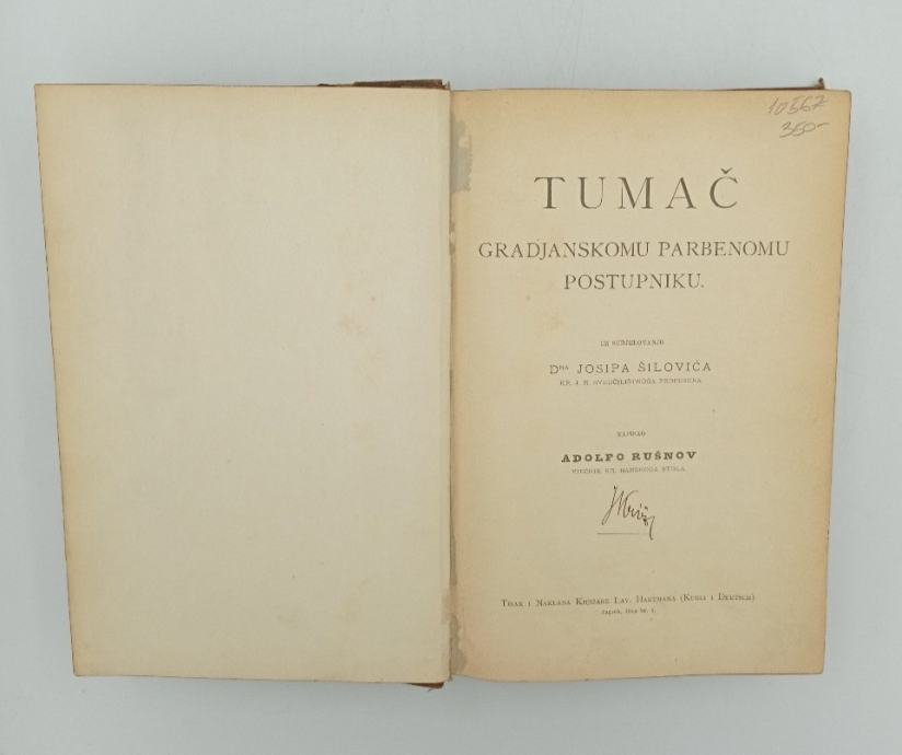 Adolfo Rušnov: Tumač gradjanskomu parbenomu postupniku Stranica: 936Dimenzije: 16x23.5Jezik: ZagrebPismo: LatinicaStanje: DobroUvez: TvrdiGodina: -
