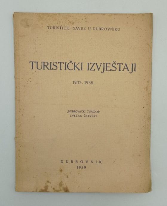 Turistički izvještaji 1937-1938"Dubrovački turizam"Svezak četvrti Stranica: 104Dimenzije: 23.5x30.5Jezik: DubrovnikPismo: LatinicaStanje: DobroUvez: MekiGodina: 1939
