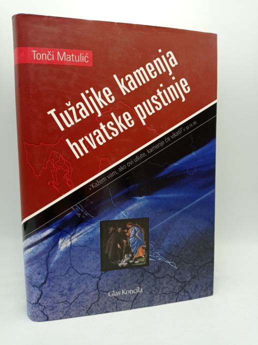 Tonči Matulić: Tužaljke kamenja hrvatske pustinjePomirenje i duhovna obnova u svjetlu proročke i kritičke raščlambe stanja duha i svijesti suvremenoga hrvatskoga društvaKnjiga se sastoji od ukupno četrnaest poglavlja raspoređenih u četiri dijela u kojima autor tematizira aktualna društvena, politička, gospodarska te crkvena događanja i previranja. Svrha knjige, istaknuo je Matulić u uvodu, jest služenje čovjeku, ponajprije kršćanskoj duši - kršćaninu koji stoji pred mnogim složenim izazovima u suvremenom društvu. Ukazujući na prijepore oko uloge i mjesta kršćanina i Crkve u hrvatskom društvu Matulić poziva na kršćansku odgovornost za izgradnju bolje političke zajednice i društva, naznačujući put kojim treba ići.Povod za nastanak knjige jest fenomen trećeg hrvatskog predsjednika, izabranog na posljednjim predsjedničkim izborima. No knjiga se ne bavi njime osobno, premda njegovu osobu nije uvijek jednostavno odvojiti od fenomena kojima se knjiga bavi: prvo, treći hrvatski predsjednik uvjerljivo je pobijedio protukandidata koji nije skrivao svoje katoličko opredjeljenje i drugo, njegovo izjašnjavanje za nevjernika tj. agnostika koje je pred same izbore u dijelu vjerničke javnosti izazvalo određenu paniku i nerazborite reakcije.Motiv za nastanak knjige jest stanje duha i svijesti suvremenoga hrvatskoga društva pri čemu se neizbježno misli na stanje duha i svijesti naše kršćanske duše koja je metafora za kršćanski život ili život kršćanina u konkretnim povijesno-društvenim okolnostima. Budući da hrvatska politička zajednica i društvo prolaze kroz duboku duhovnu krizu autor ponajprije pokušava zaviriti u kršćansku dušu i proniknuti uzroke njezine trenutne obamrlosti i tjeskobe. Hrvatsko je društvo kršćansko tj. katoličko društvo te je posljedično duboka duhovna kriza hrvatskog društva istodobno i duboka duhovna kriza kršćanske duše. Stranica: 440Dimenzije: 17x24Jezik: ZagrebPismo: LatinicaStanje: OdličnoUvez: Tvrdi s ovitkomGodina: 2011